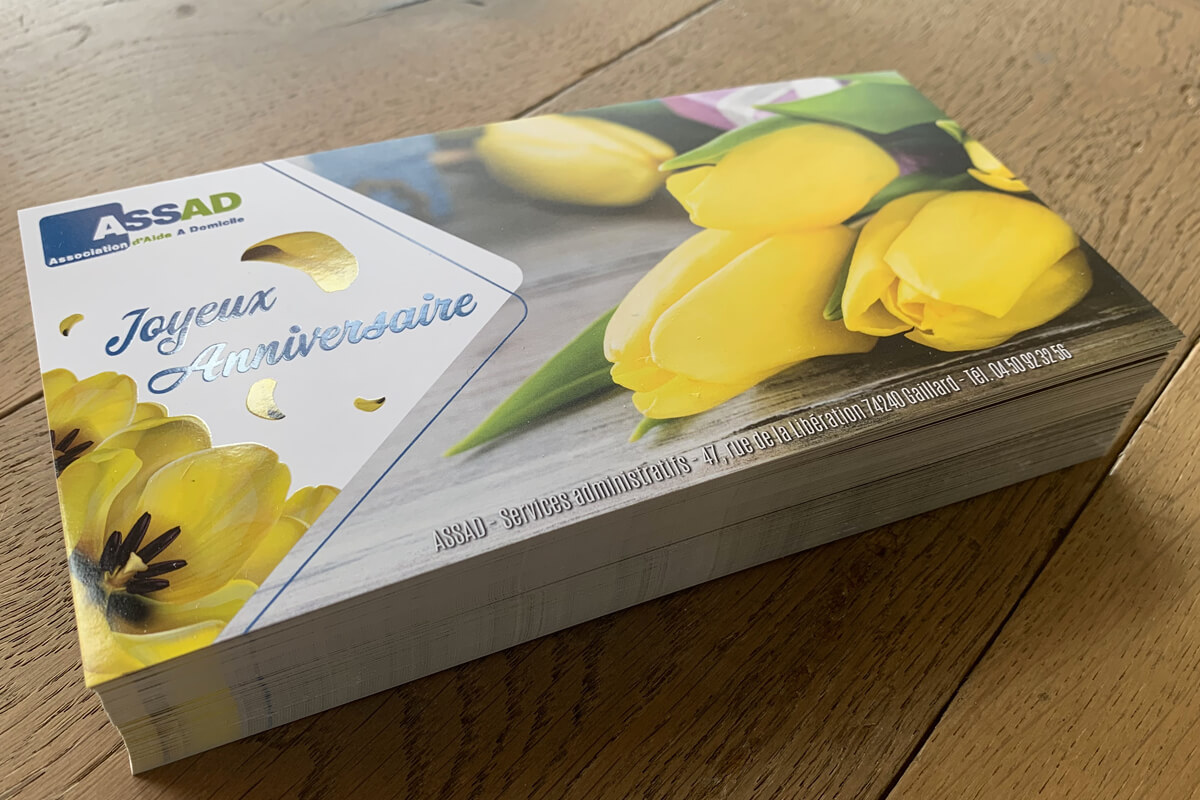 Objectifs : Création d’une carte anniversaire originale destinée aux bénéficiaires de l’association.