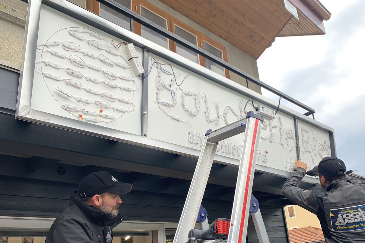 - Caisson lumineux avec éclairage leds, lettrages Plexi en relief & Face Alu en finition laquée gris anthracite