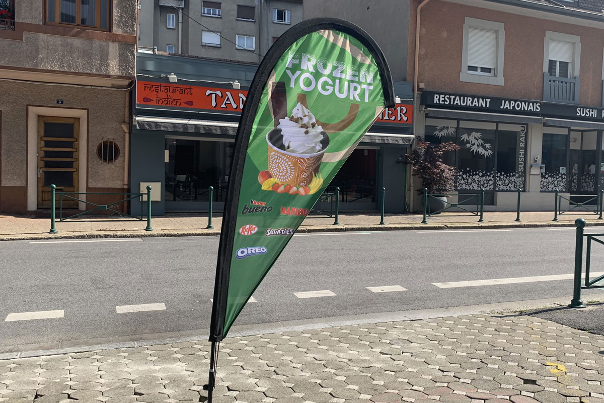 Objectifs : Après quelques mois d’activité, notre client souhaitait revoir les éléments graphiques de sa communication et nous a confié la création de son nouveau dépliant, de ses flyers et de son oriflamme destinés à la commercialisation de Frozen Yogurt.