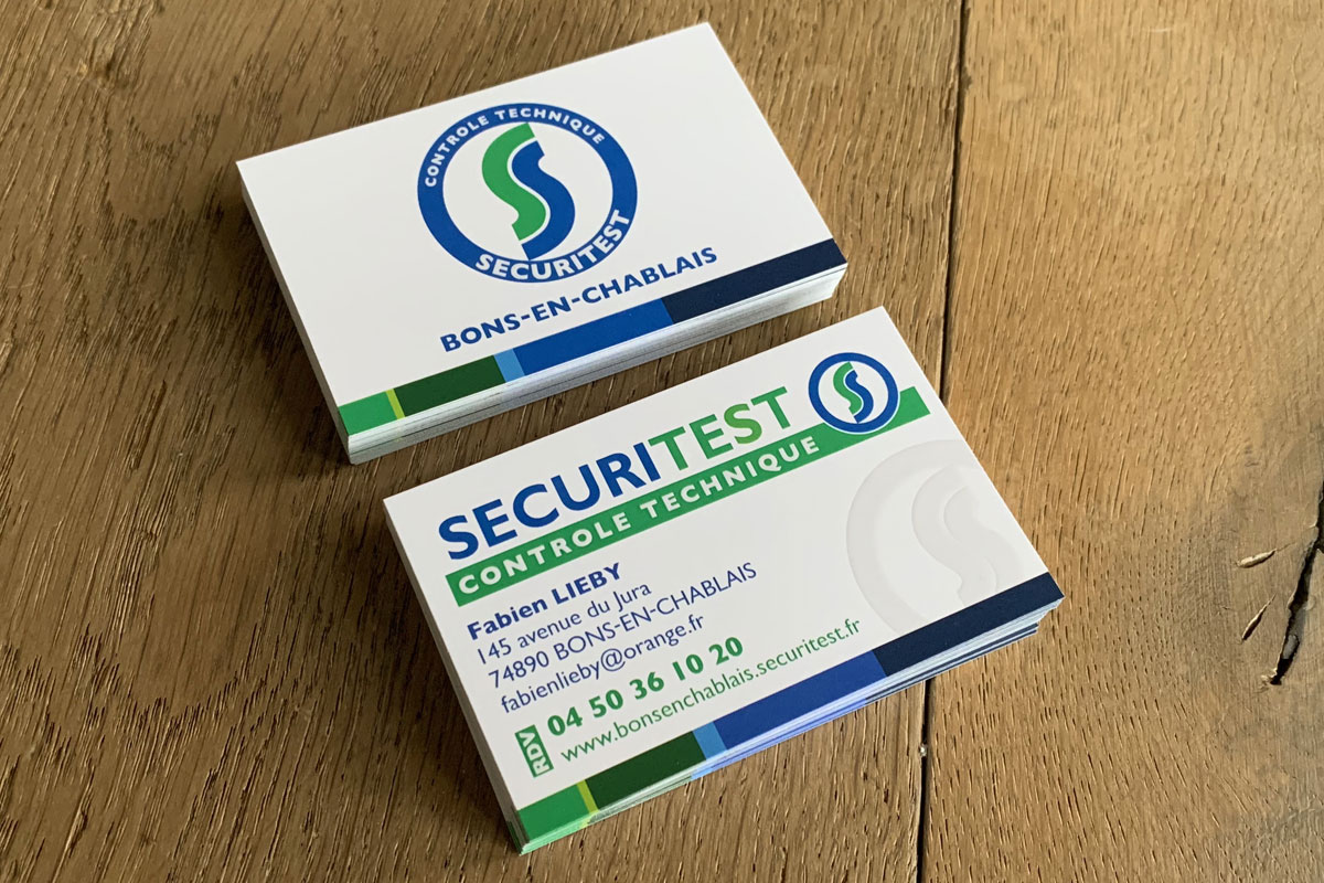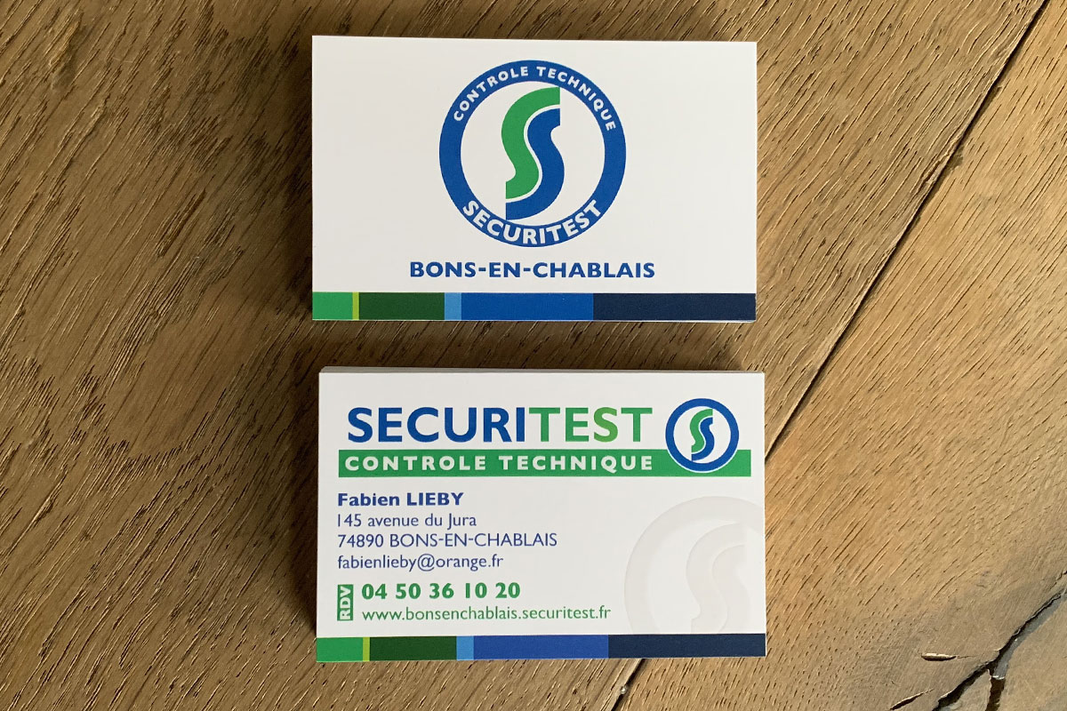 Objectifs : Moderniser l’image du centre avec la création d’une carte de visite originale respectant la charte graphique du réseau Sécuritest.