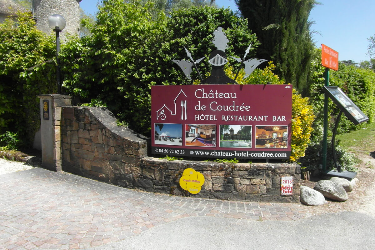 Objectifs : Le gestionnaire du Château de Coudrée souhaitait revoir sa signalétique en remplaçant les différents panneaux d’information situés aux abords de la propriété sachant que le seul format de logo détenu par le client était un fichier JPG (format image) non exploitable en grande taille.