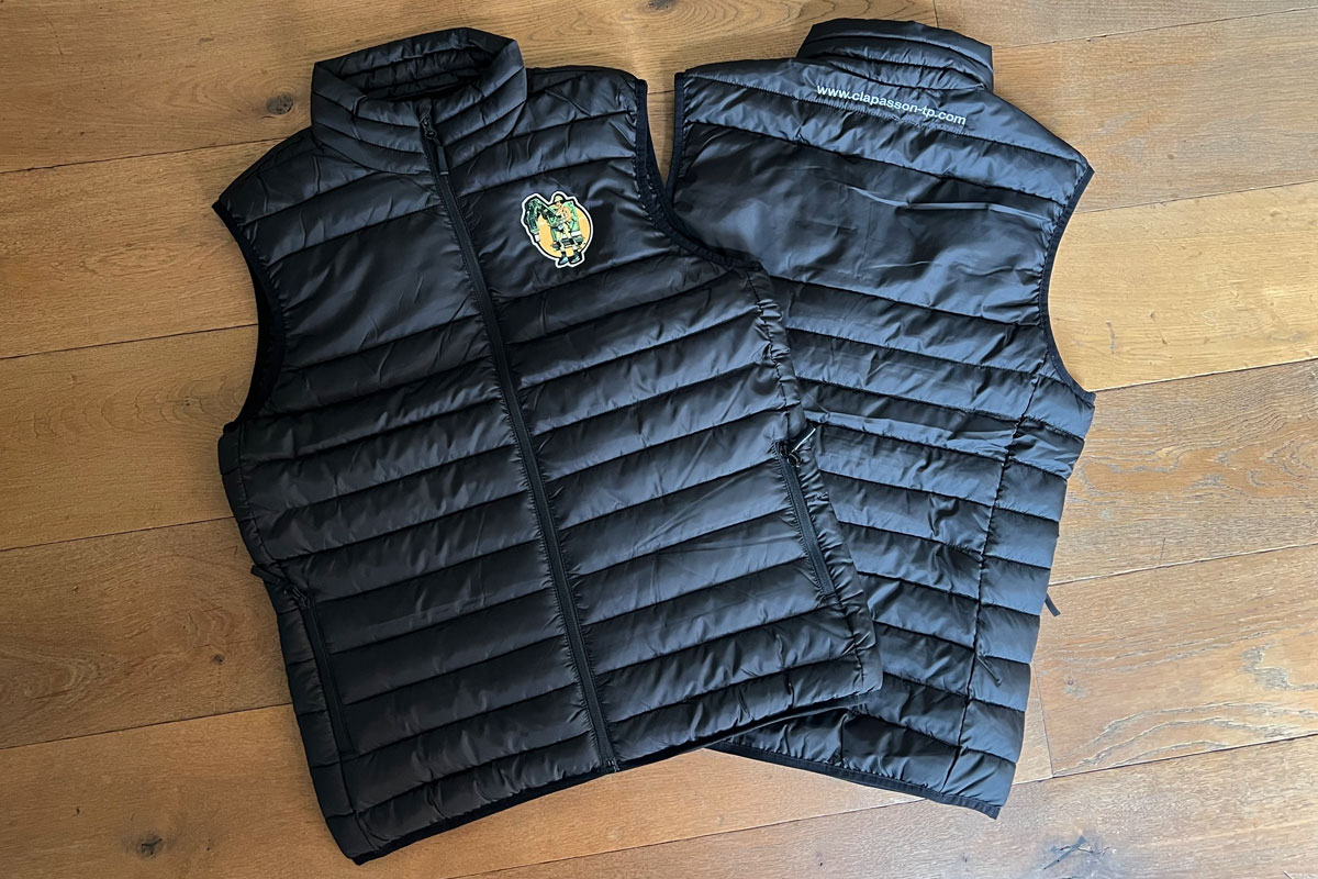 Objectifs : Après avoir travaillé sur la création de ses 2 sites Internet et de ses différents supports de communication, notre client a souhaité nous confier la personnalisation de doudoune sans manche à offrir à ses clients.