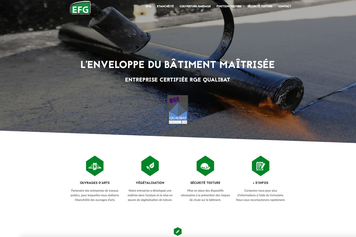 Contexte : EFG Étanchéité est située à Ville-La-Grand. Elle propose ses services dans les domaines suivants : étanchéité des toitures terrasses, enveloppe des bâtiments industriels, résines d’étanchéité, étanchéité des ouvrages d’arts, cuvelage,…