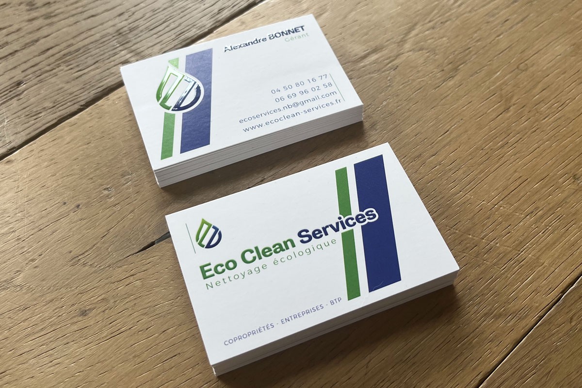 Objectifs : Après une refonte complète de l’identité visuelle de l’entreprise et la personnalisation de sa flotte de véhicules, il ne manquait plus que les cartes de visite pour qu’Eco Clean Services puisse communiquer sur sa nouvelle image.