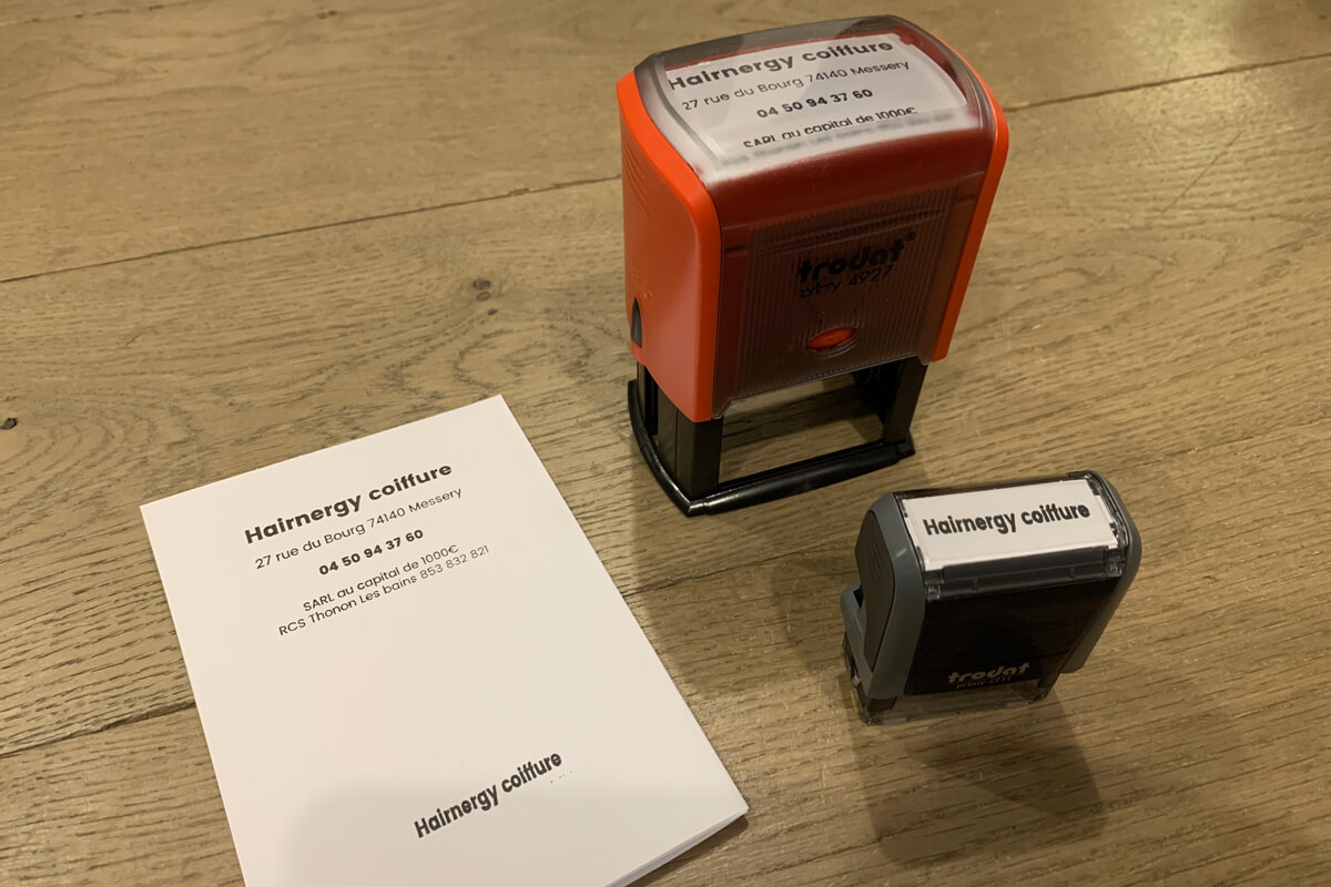 Objectifs : Pour la création de son entreprise, Fabienne souhaitait avoir un logo, des tampons encreurs et une carte de visite originale, élégante et moderne afin de pouvoir communiquer sur son salon.