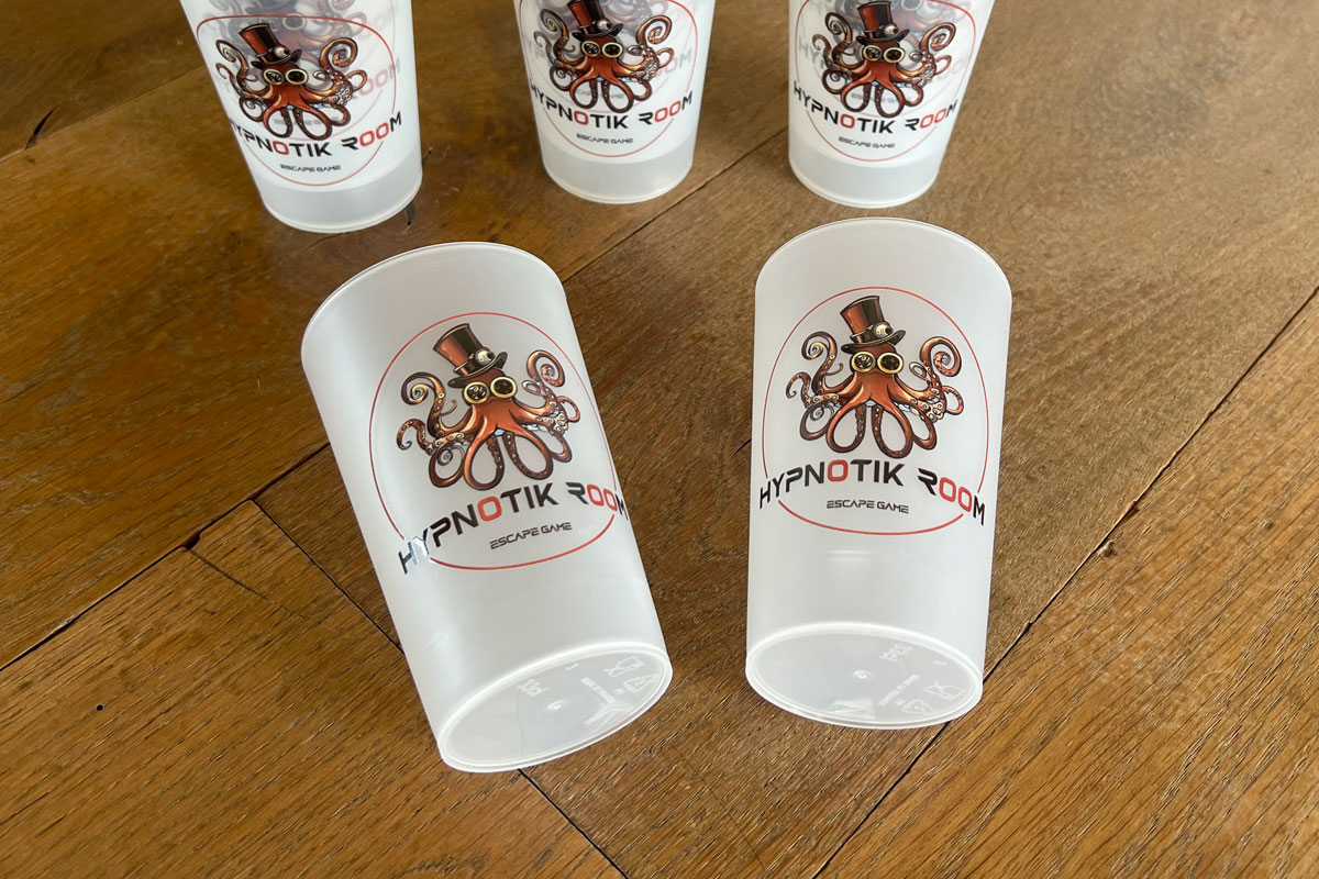 Objectifs : Après l’impression des 1ers supports papier et la création de textiles personnalisés, notre client a souhaité nous commander des EcoCup réutilisables pour ses évènements.