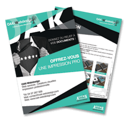 Offrez à vos supports de communication une qualité d’impression professionnelle ! OAK-Webdesign propose un service d’impression clé en main de la conception à la livraison. Nous pouvons également imprimer tous types de supports qui n’auraient pas été créés par nos soins !