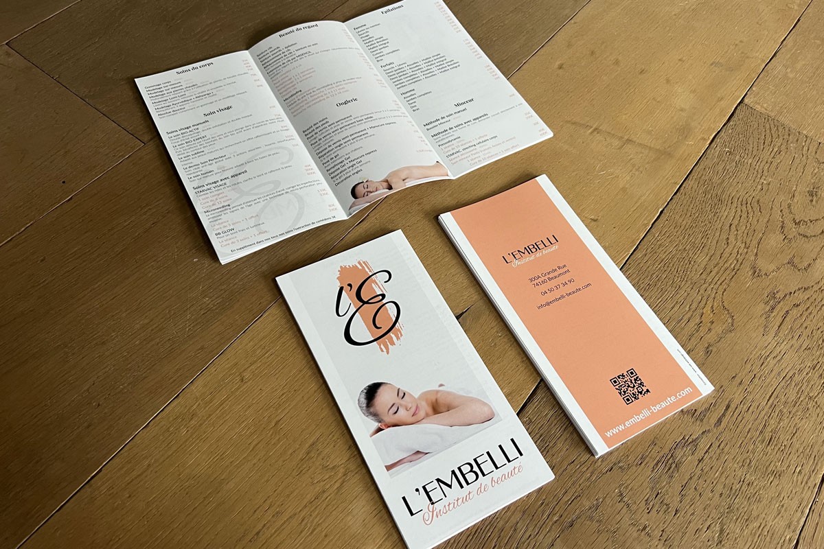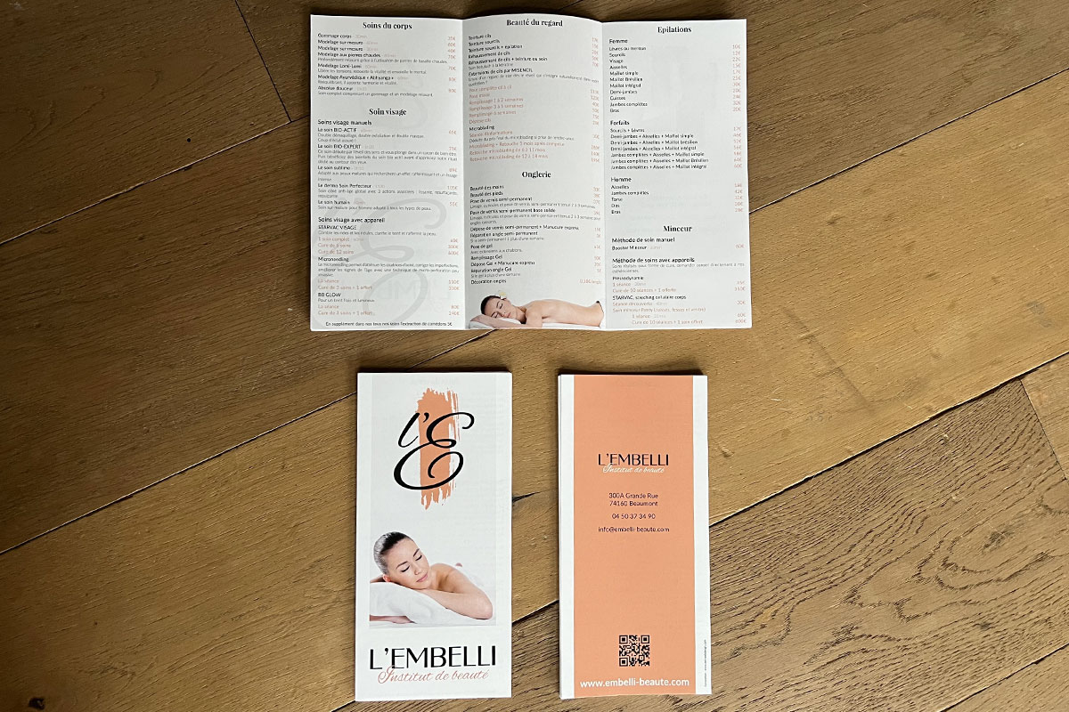 Objectifs : Après avoir créé l’identité visuelle et le site Internet, notre cliente a souhaité nous confier la création de sa plaquette tarifaire.