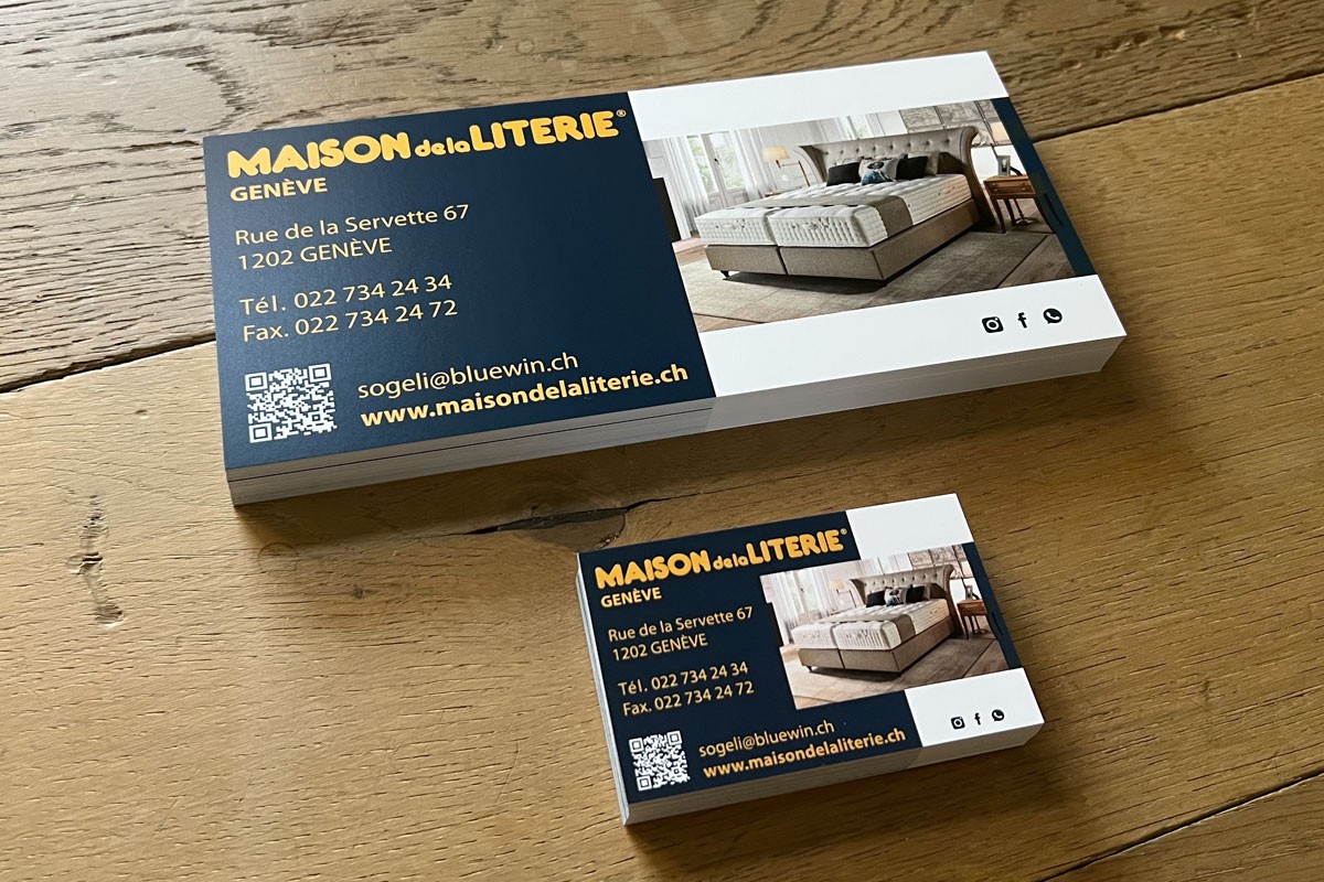 - Carte de correspondance = Impression quadri sur papier couché mat 350g