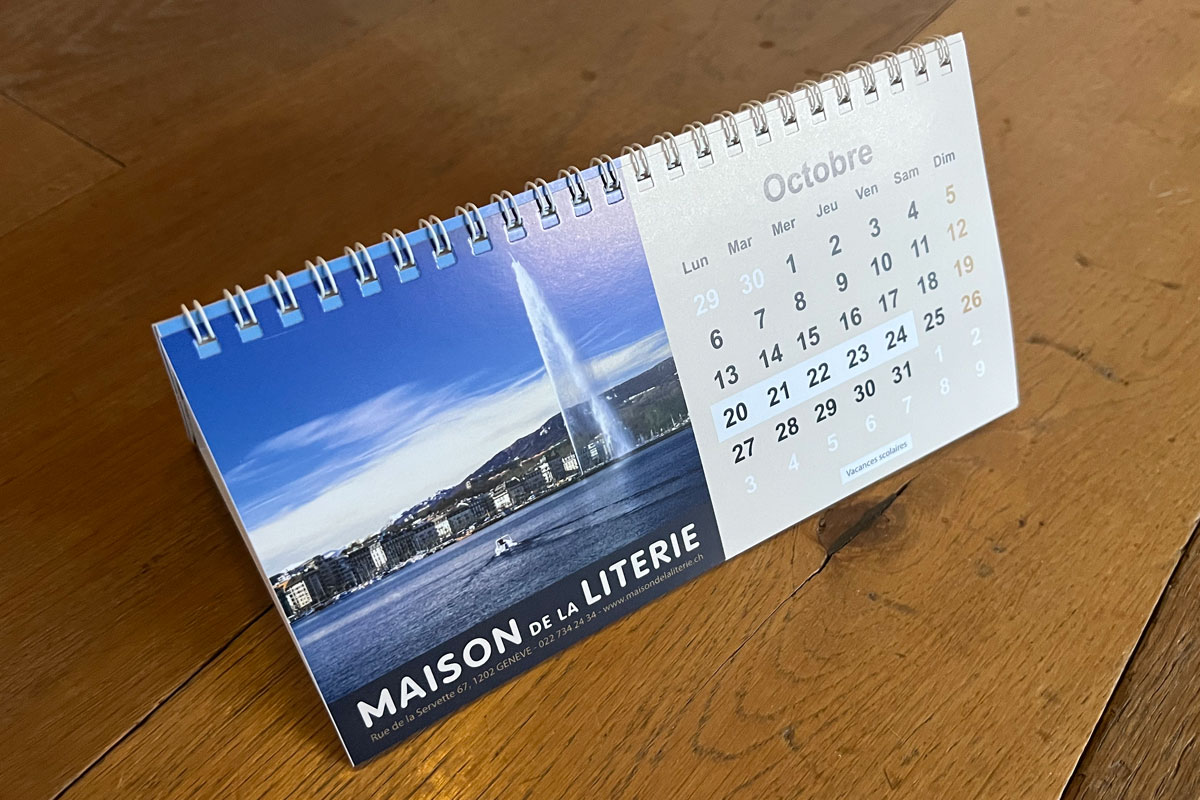 Objectifs : Après une refonte complète de sa charte graphique et de ses supports de communication, Le magasin de Genève souhaitait offrir un calendrier personnalisé à sa clientèle.