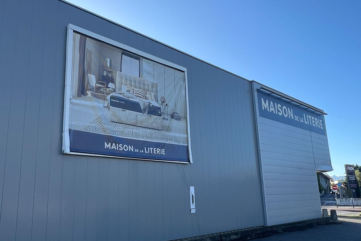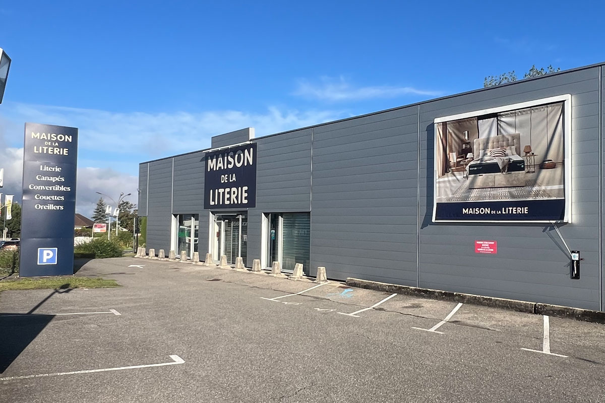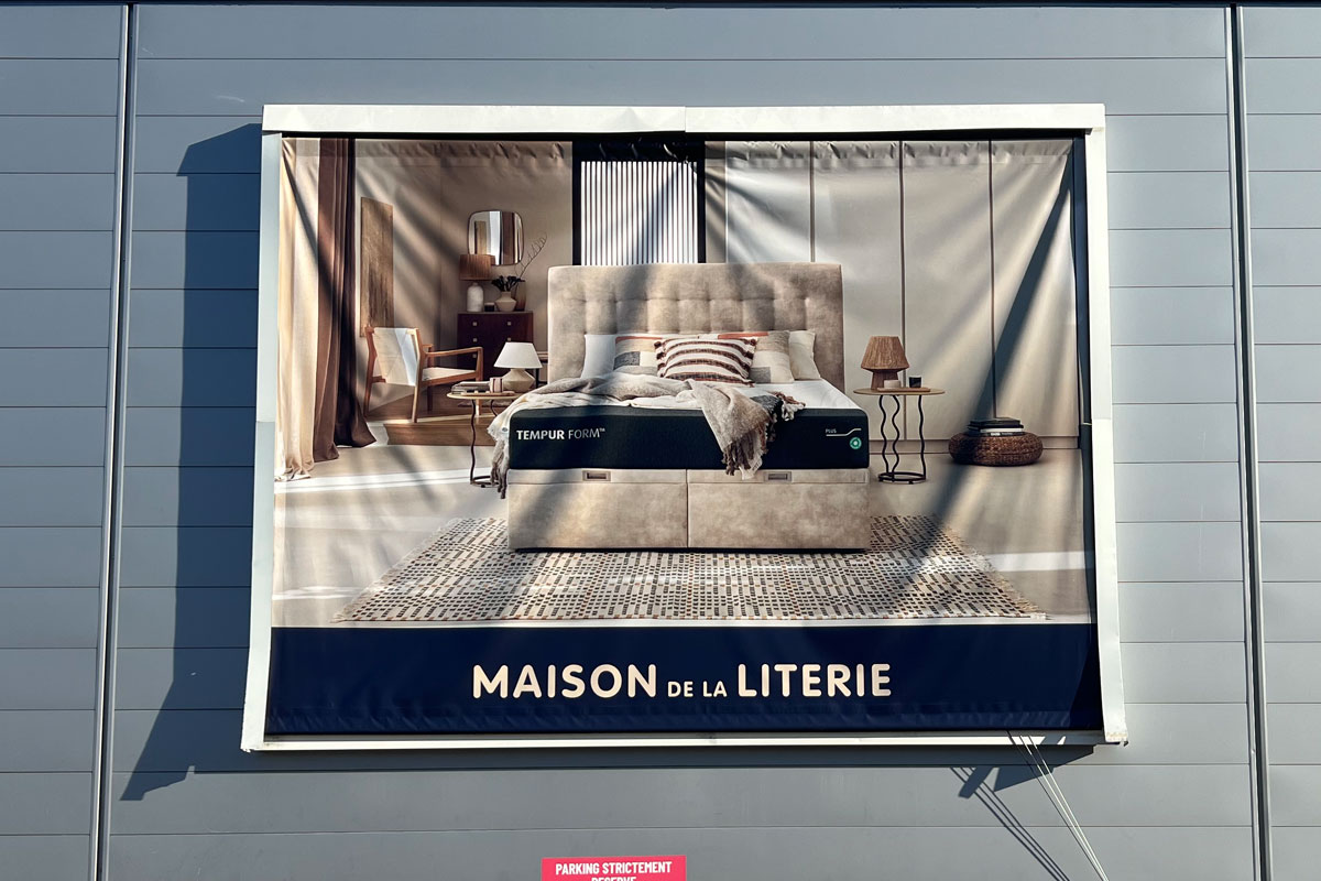 Objectif : Après la création d’un visuel à l’occasion des soldes, notre client a souhaité disposer de nouvelles bâches publicitaires adaptées aux périodes hors promotions.