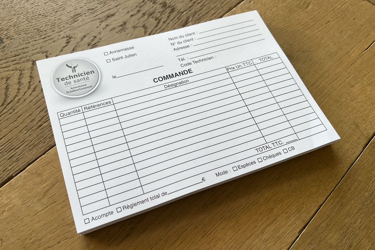 - Carnets autocopiants = Impression 1 couleur sur 2 feuillets de 70g
