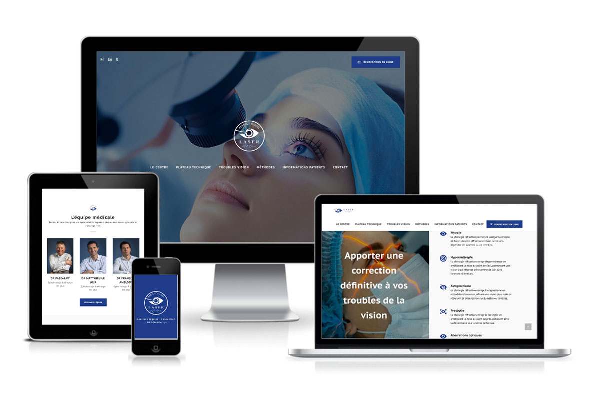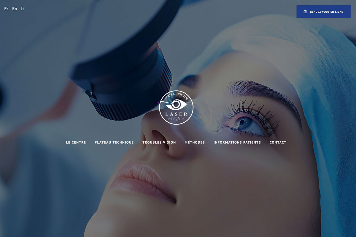 Objectif : Après avoir conçu le premier site Internet du Centre Genevois Laser, notre client a souhaité nous renouveler sa confiance pour assurer la refonte technique et graphique du site, ainsi que la mise à jour de la nouvelle charte graphique et de la signalétique du centre rebaptisé « Laser Mont-Blanc ».