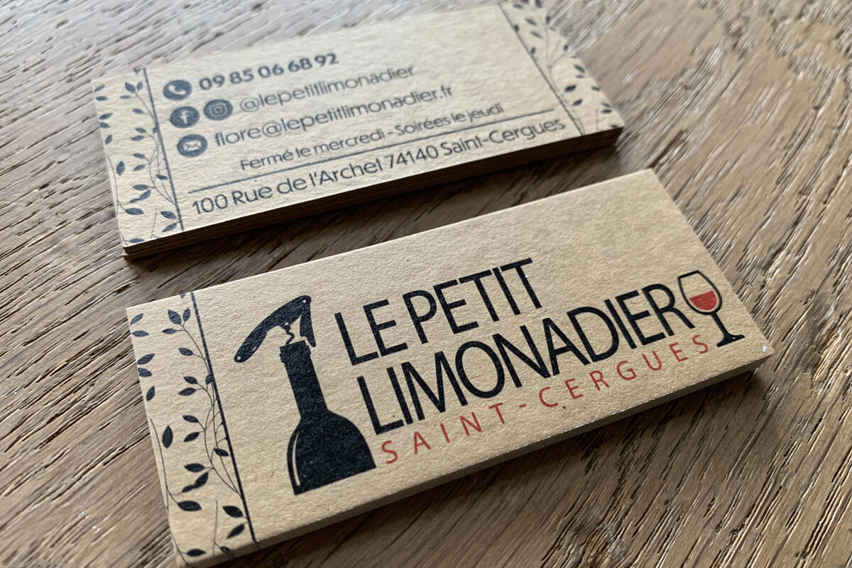 - Carte de visite = Impression quadri sur papier kraft 300g