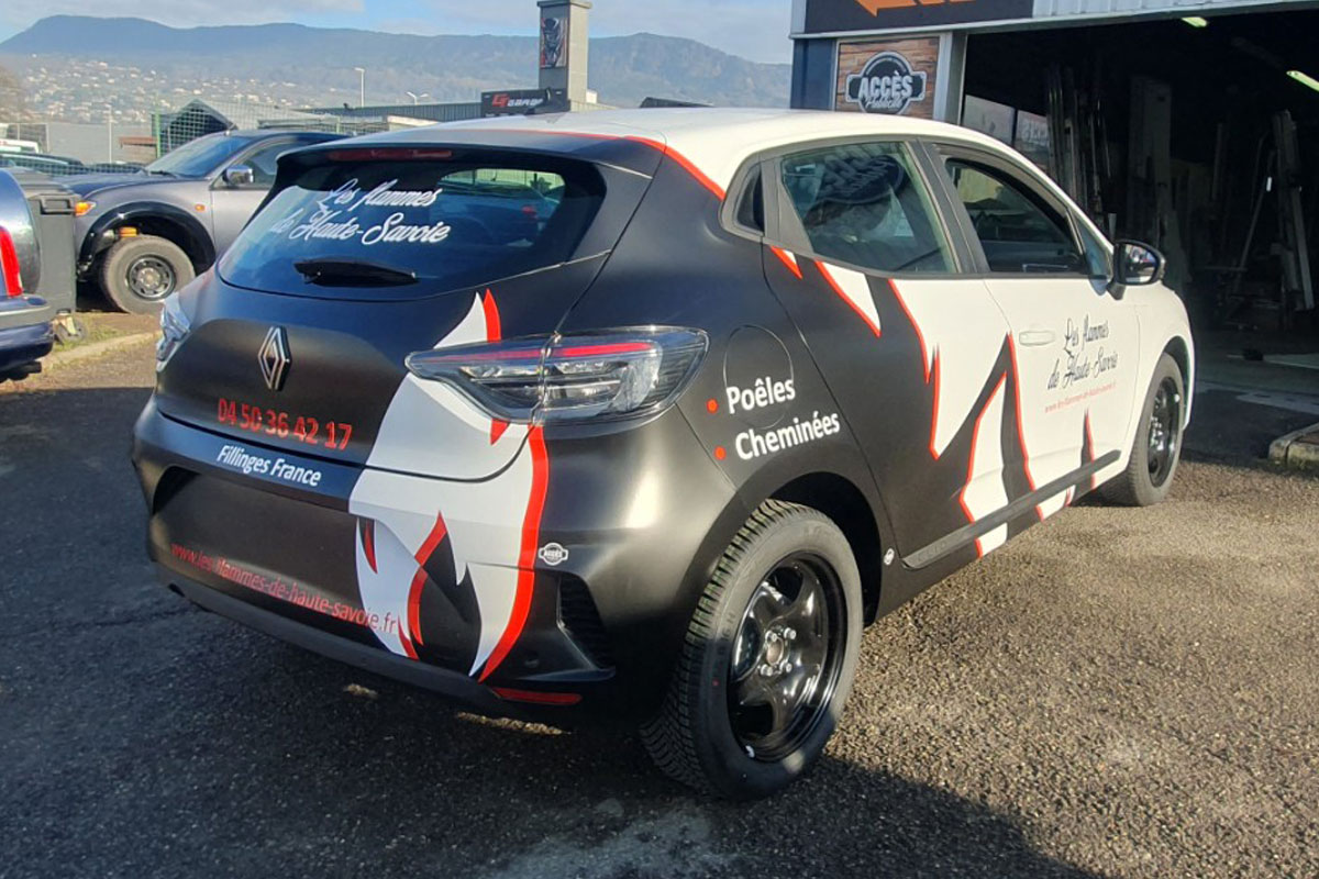 Solution : OAK-Webdesign a adapté le projet existant au nouveau véhicule, puis a confié la réalisation technique à son partenaire Accès Publicité.