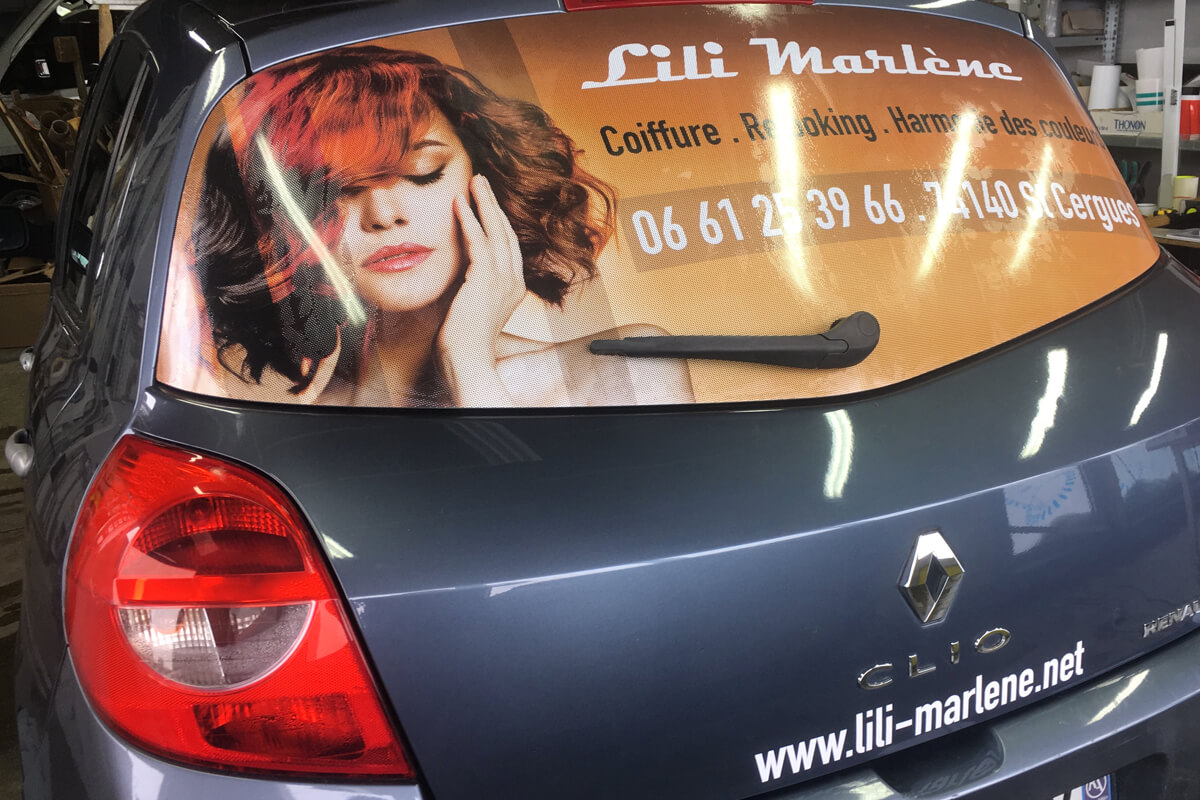- Covering : Impression numérique sur adhésif micro-perforé & décor adhésif teinté pleine masse