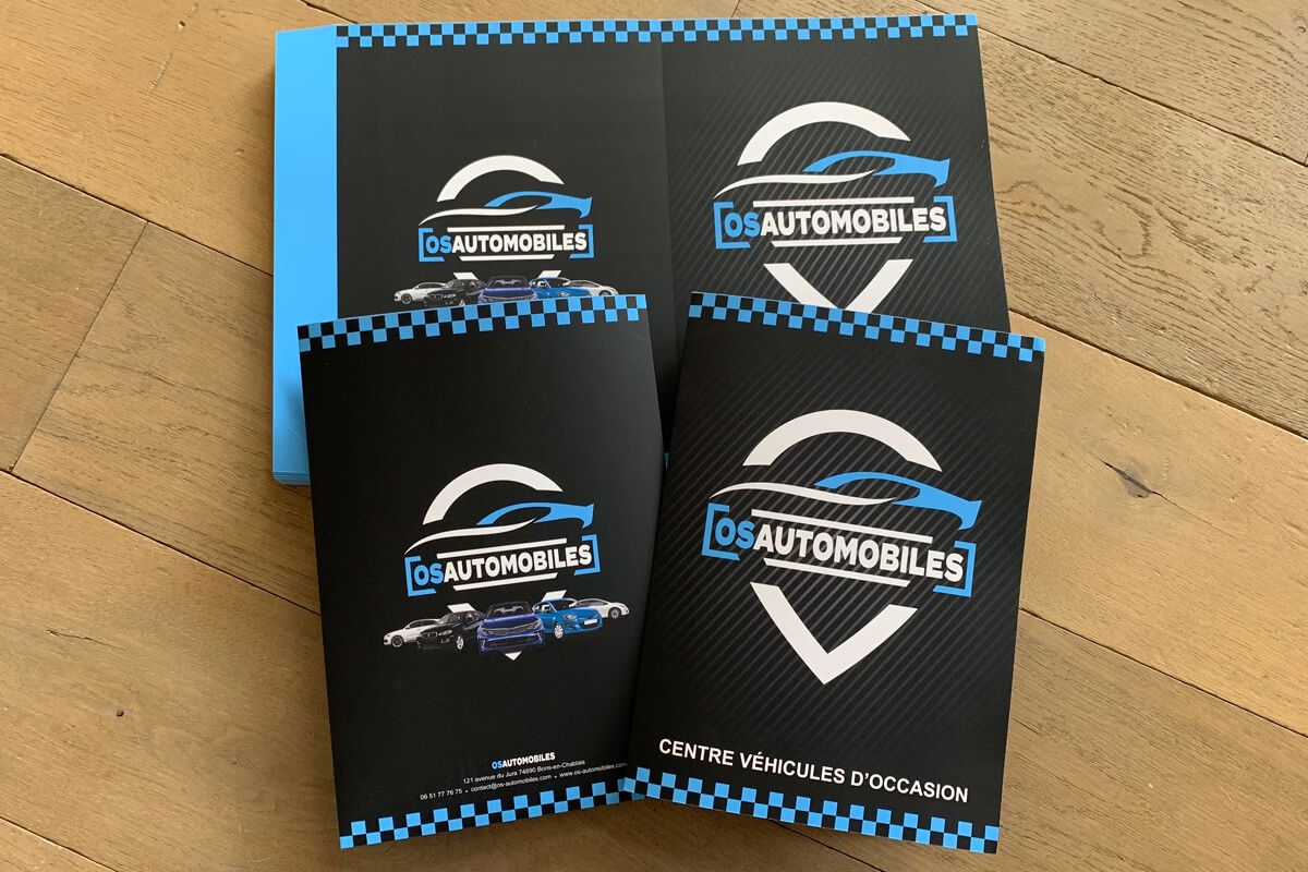 - Pochette à rabats OS Automobile = Impression quadri sur papier couché mat 350g + Pelliculage Recto Soft touch