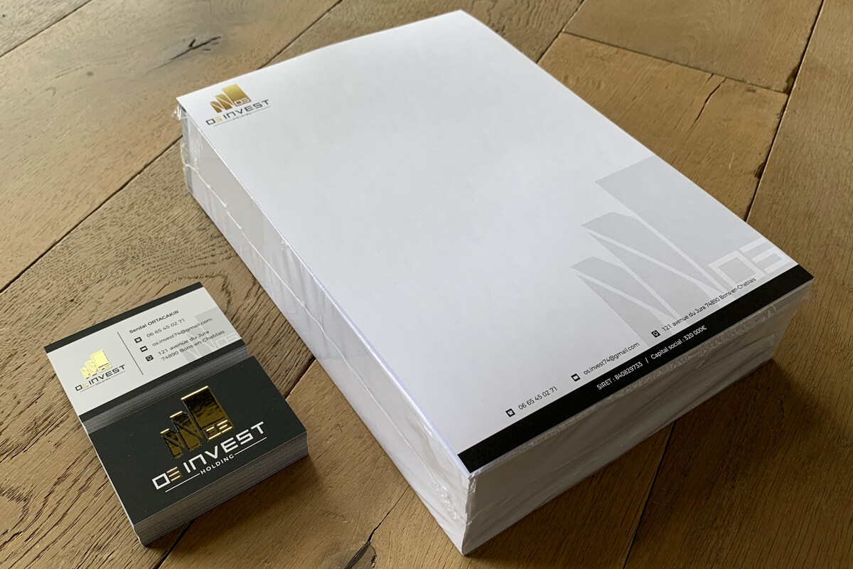Solution : OAK-Webdesign a donc réalisé plusieurs propositions de logos afin de correspondre parfaitement aux attentes de notre client. Une fois validé, nous sommes concentrés sur la conception du papier à entête et des cartes de visite avec une finition très haut de gamme.