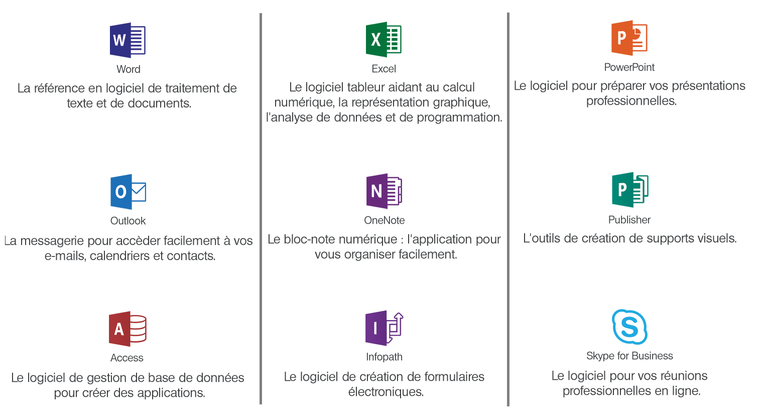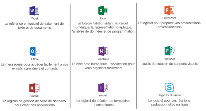 - Les applications Office Online pour l’édition de documents en ligne depuis n’importe quelle connexion Internet