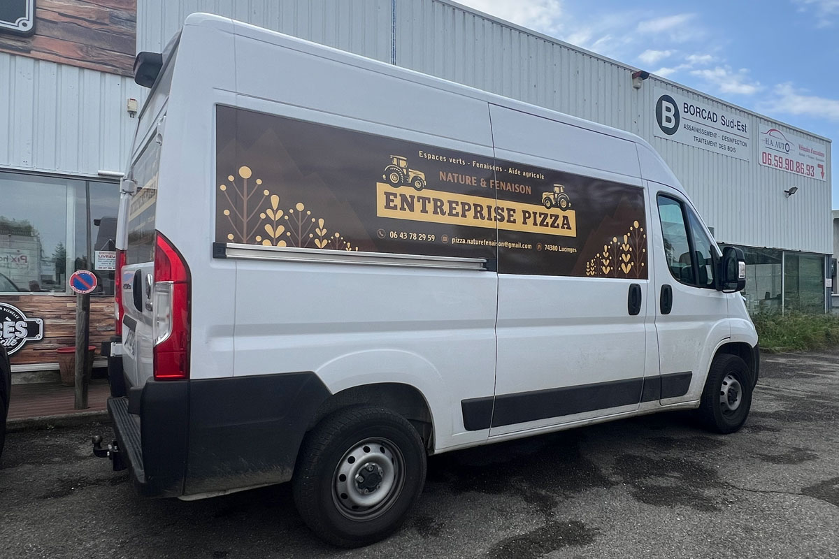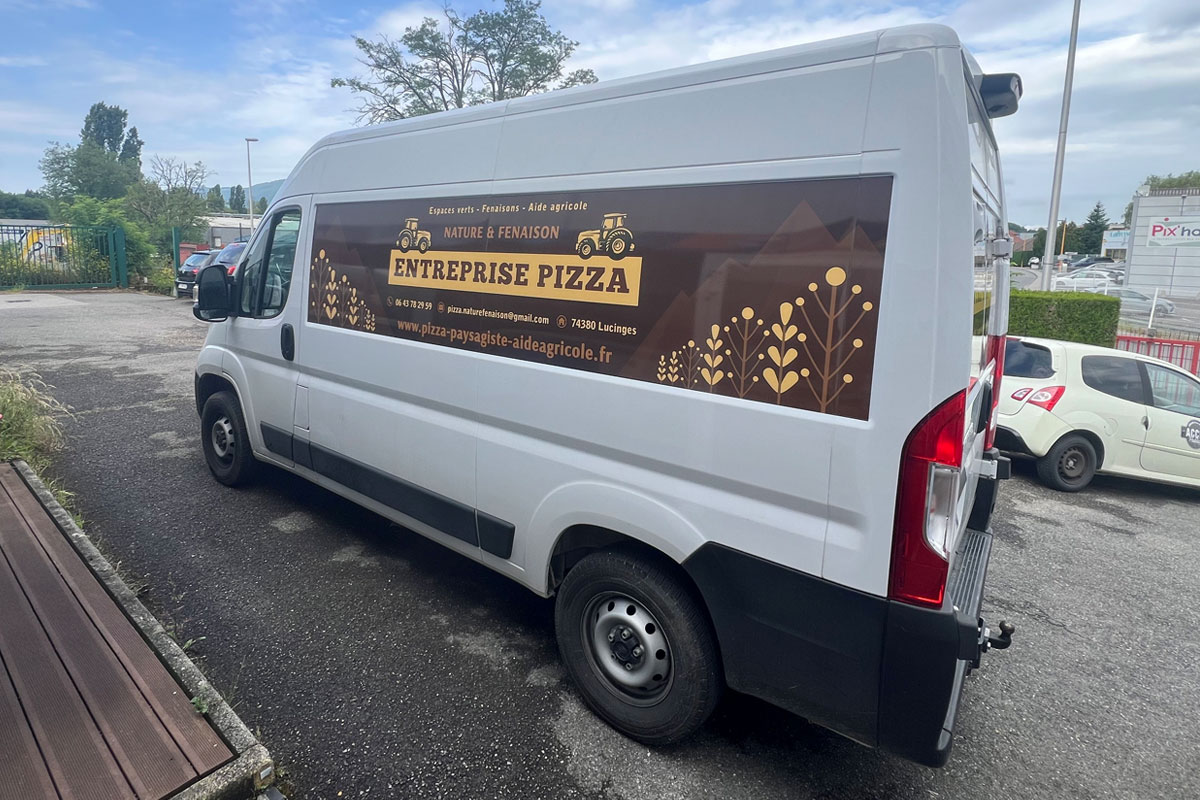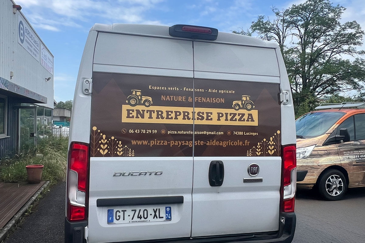 Objectif : Après la création de ses premiers supports de communication, notre client a souhaité nous confier la personnalisation de son véhicule afin de le rendre facilement identifiable par sa clientèle et de renforcer sa visibilité auprès de prospects.