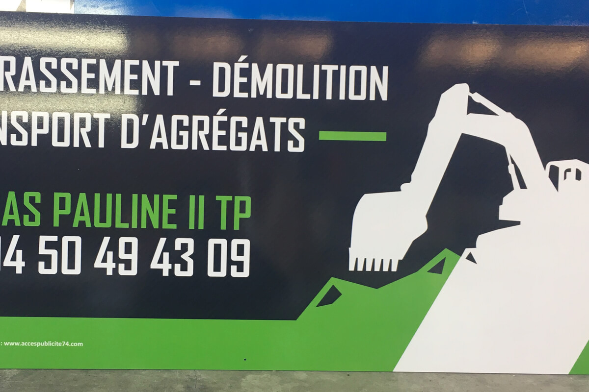 Objectifs : Son gérant cherche une solution pour se faire connaître sur les chantiers à l’aide d’affichage léger et résistant.
