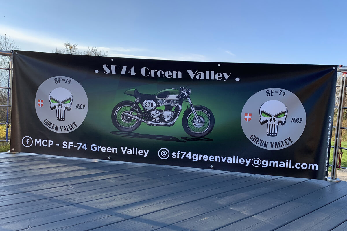 Objectifs : Le moto club souhaitait créer des banderoles aux couleurs de l’association afin d’habiller son stand lorsqu’il participe à des évènements.