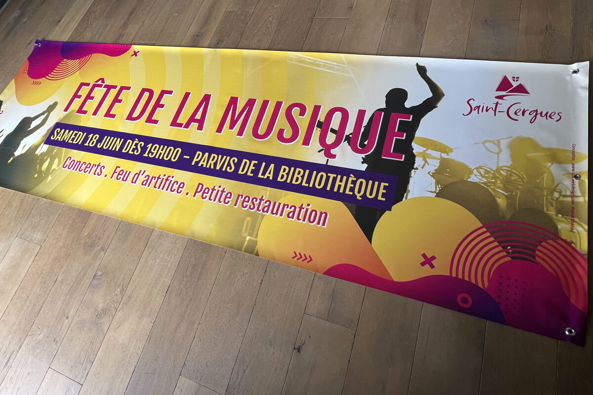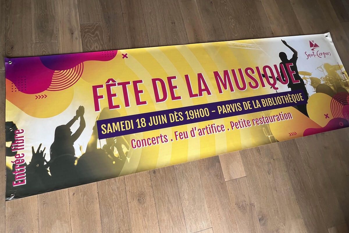 Objectifs : Création d’une charte graphique et de banderoles permettant de faire la promotion de la prochaine fête de la musique organisée par le service communication de la commune.
