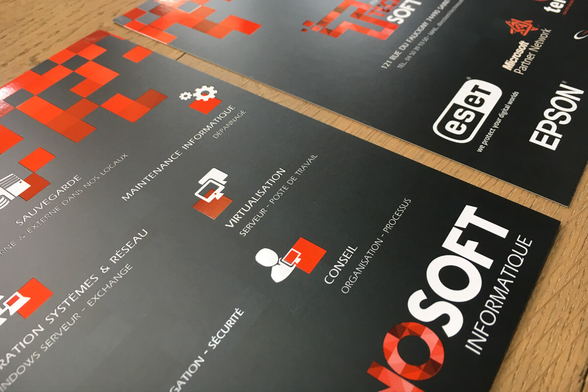 - Flyer : Impression quadri sur papier couché mat 350g & Finition vernis sélectif