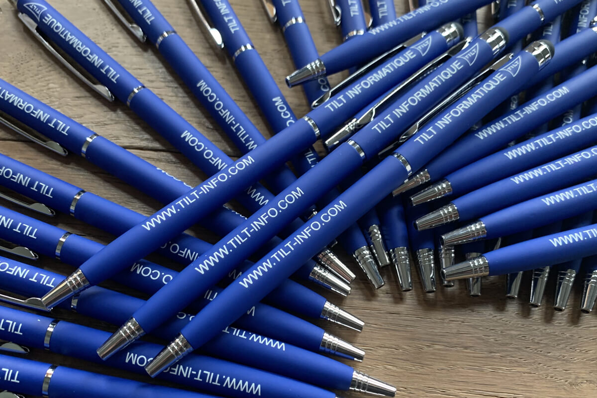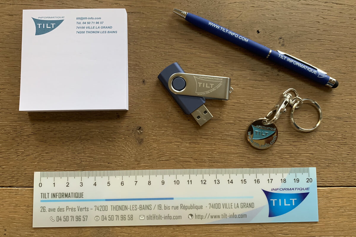 Objectifs : Après avoir réalisé le site Internet et l’intégralité des supports de communication, TILT Informatique souhaitait créer des objets publicitaires personnalisés destinés aux clients de l’entreprise.