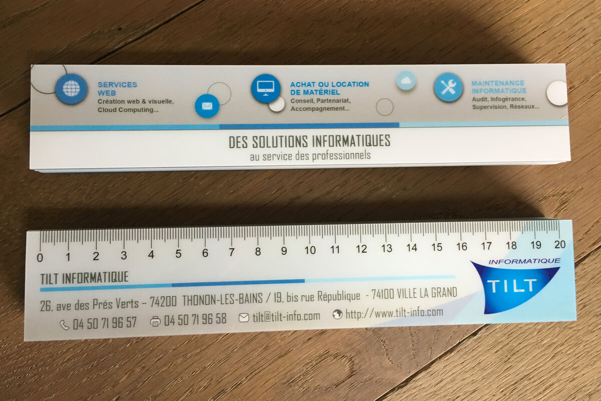 - Règles en impression quadri sur vinyle blanc polymère & Finition vernis anti-rayures