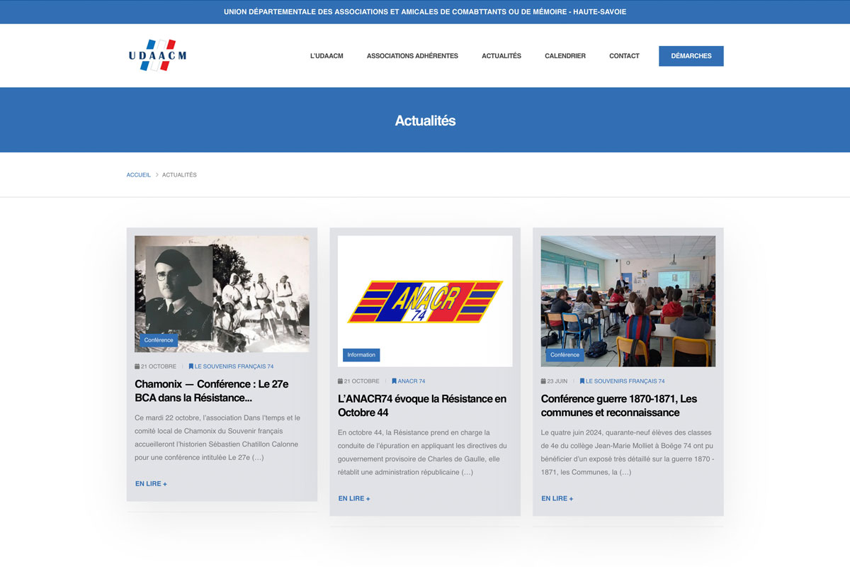 Contexte : L’Union Départementale des Associations et Amicales de Combattants ou de Mémoire a pour but de soutenir et valoriser l’action de chacune des associations et amicales adhérentes en relayant leur communication en particulier sur leur site internet.