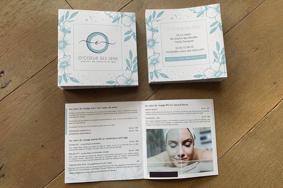 Objectifs : Après avoir réalisé l’ensemble de la charte graphique (logo, dépliant tarifaire, bon cadeau, flyers promotionnels, enseigne et site Internet), Aurore souhaitait mettre à disposition de ses clients un document plus détaillé rassemblant l’ensemble de ses prestations.